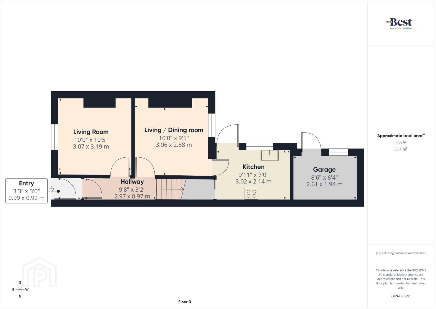 - Living room 3.1m x 3.21m (10'2 x 10'6)