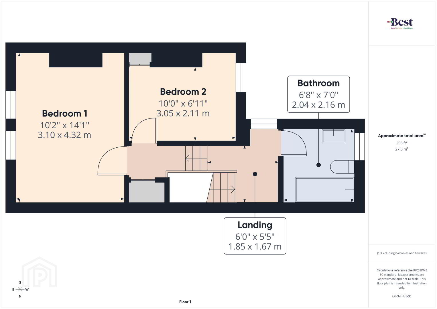 - Bedroom 1 3.1m x 4.33m (10'2 x 14'2)