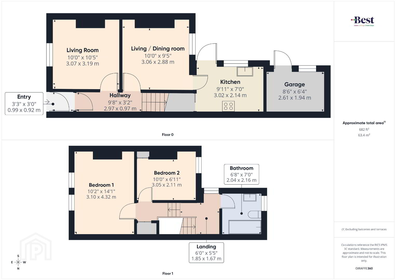 - Bedroom 2 2.5m x 3.1m (8'2 x 10'2)