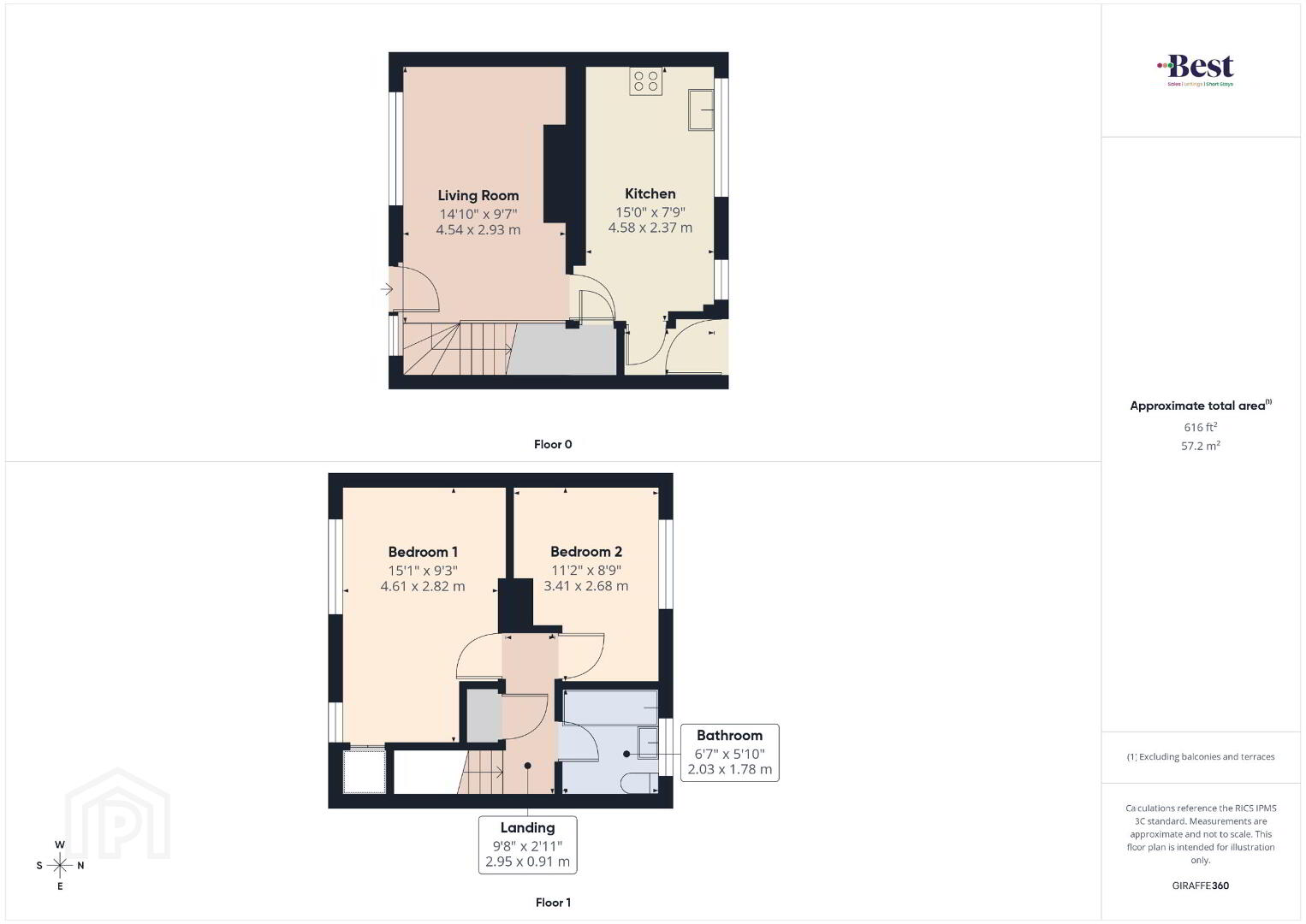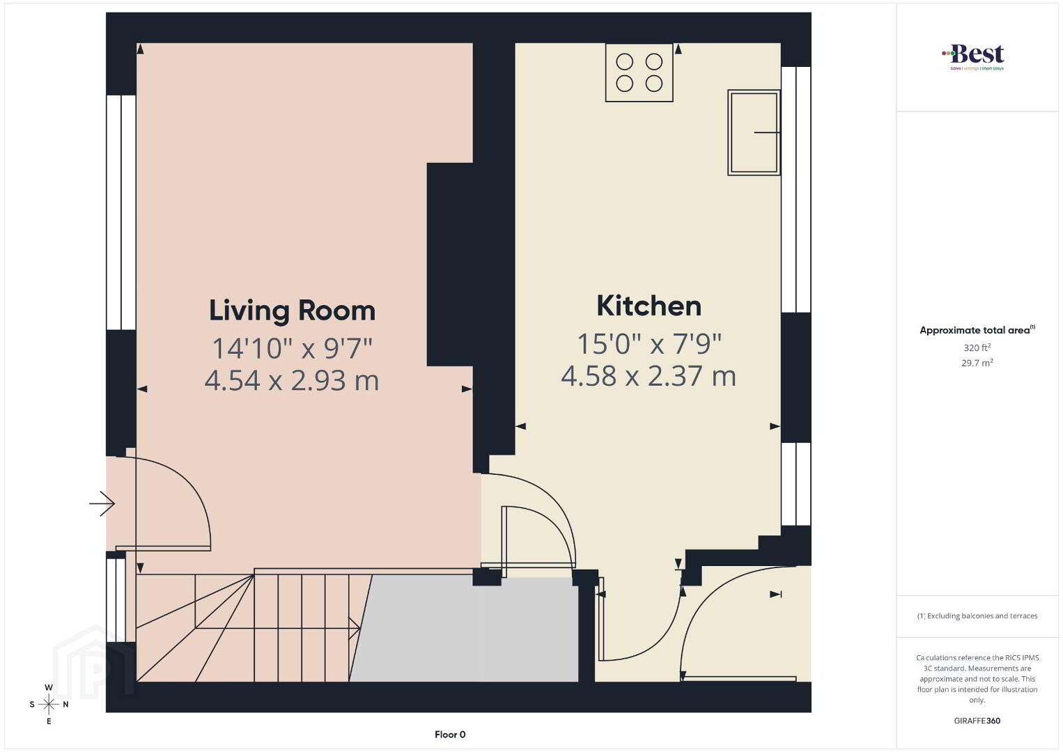 - Living room 2.93m x 4.54m (9'7 x 14'11)