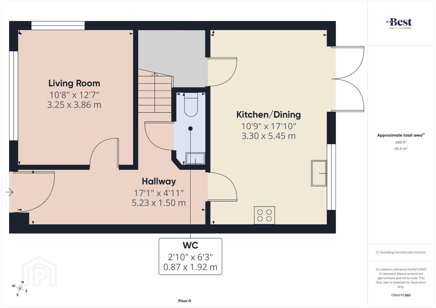 - Living room 3.25m x 3.87m (10'8 x 12'8)