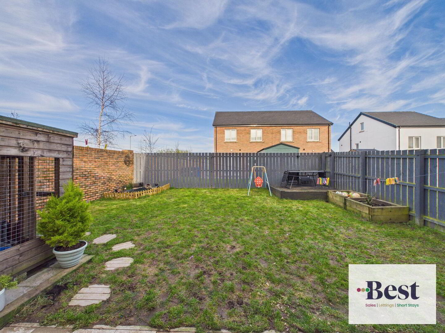 - fully enclosed. Paved patio area leading to lawn. Deck and feature plant areas. Water feature