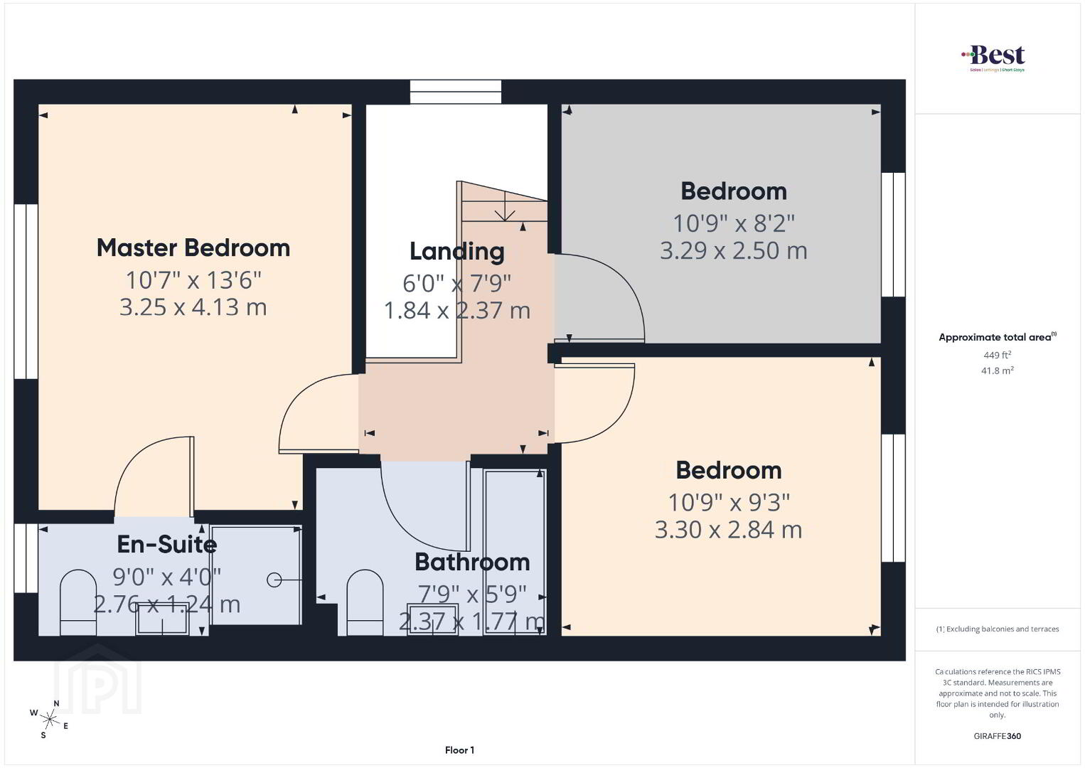 - Master bedroom 3.26m x 4.16m (10'8 x 13'8)