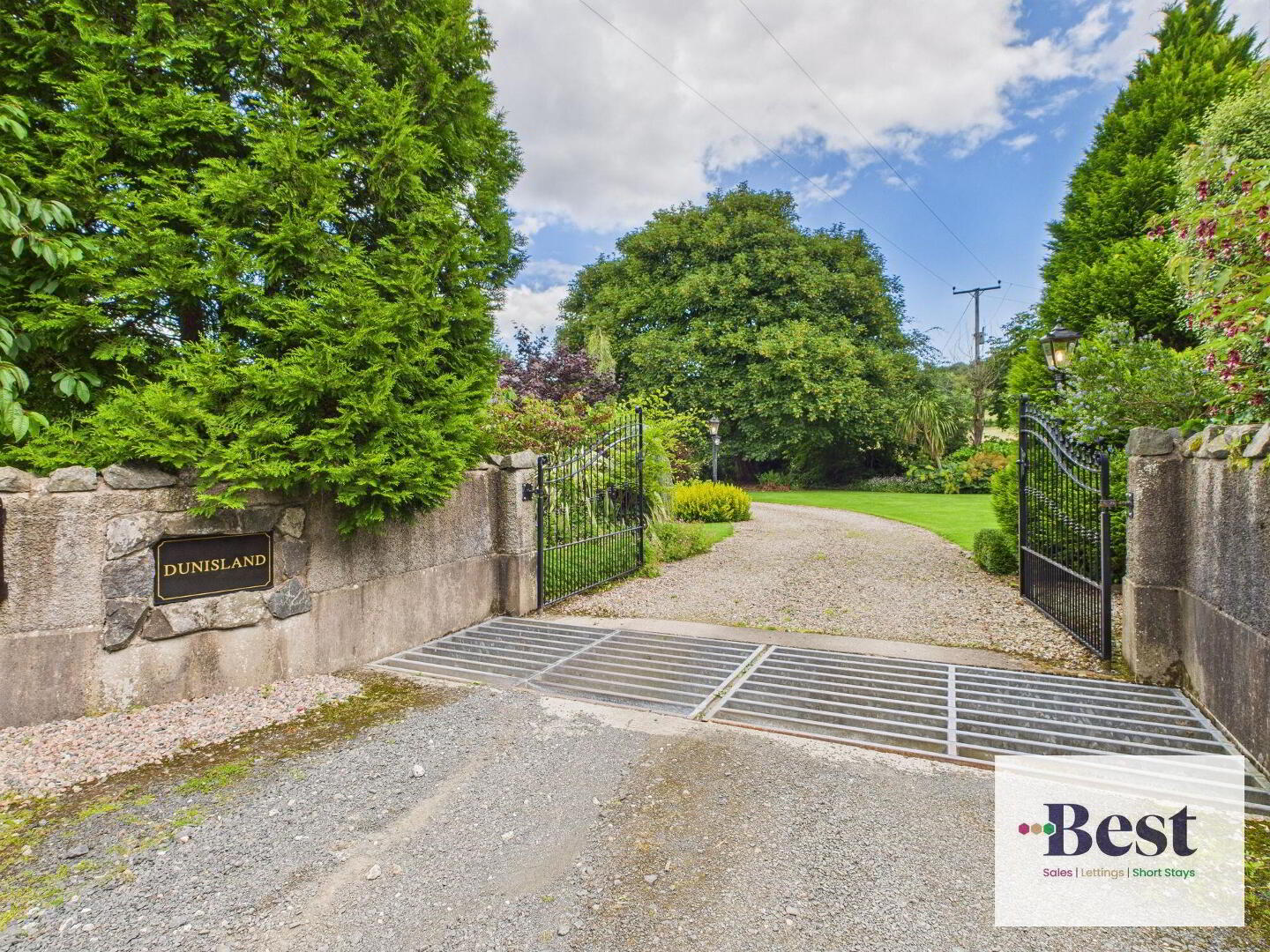 Double electric gates from the Road side lead down a well maintained lane only shared with one neighbouring property. After veering to the left you come to a further set of double Iron gates (wired for electric connection) leading into Dunisland. Stoned driveway bounded by extensive architecturally laid out lawns lead to front parking and into this unique home.