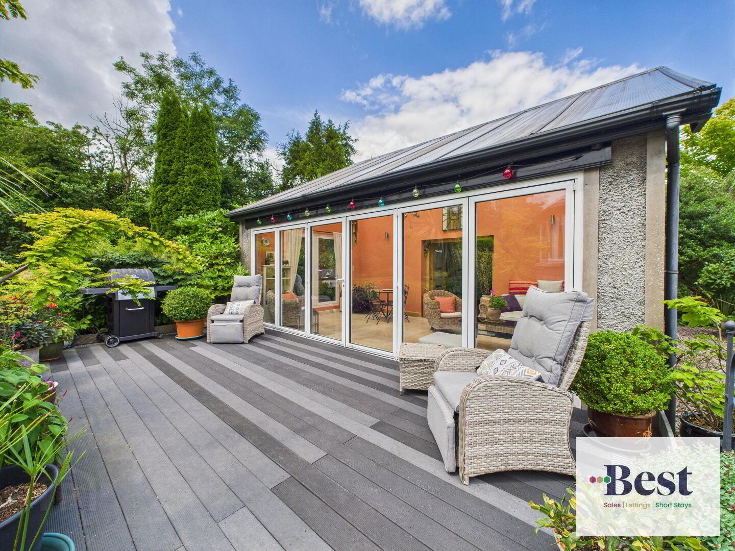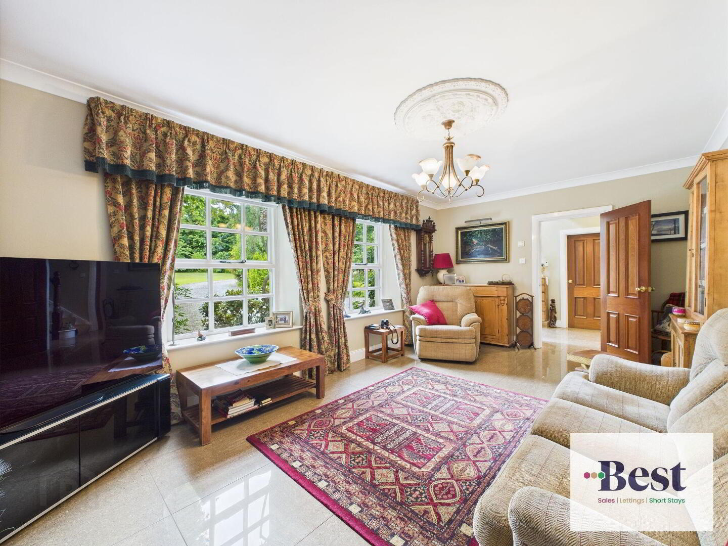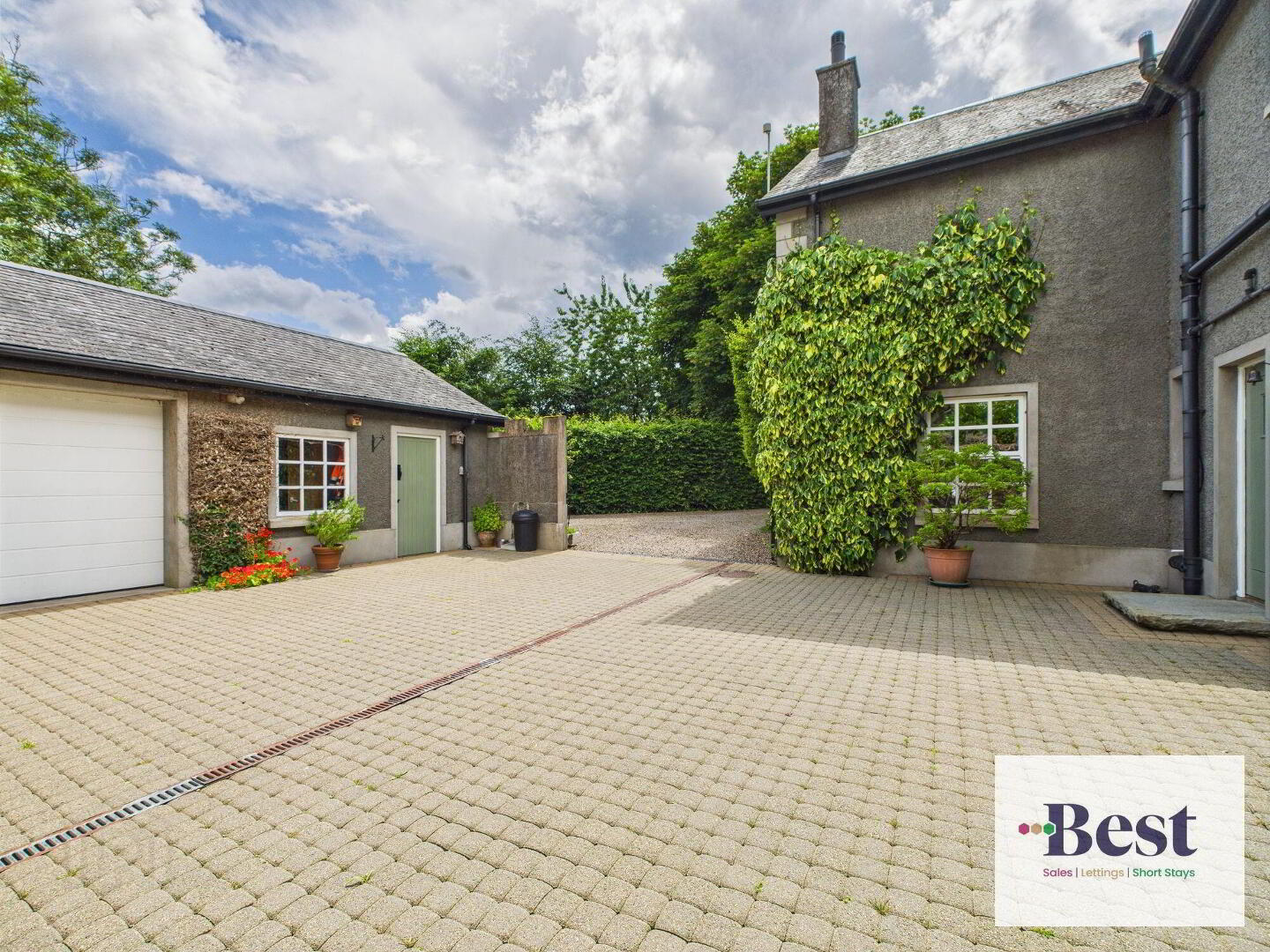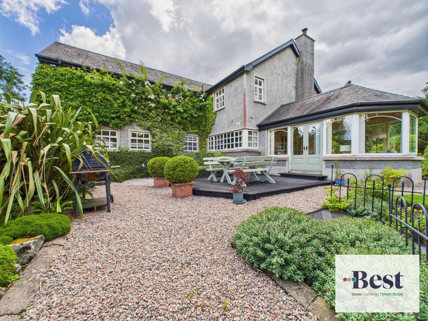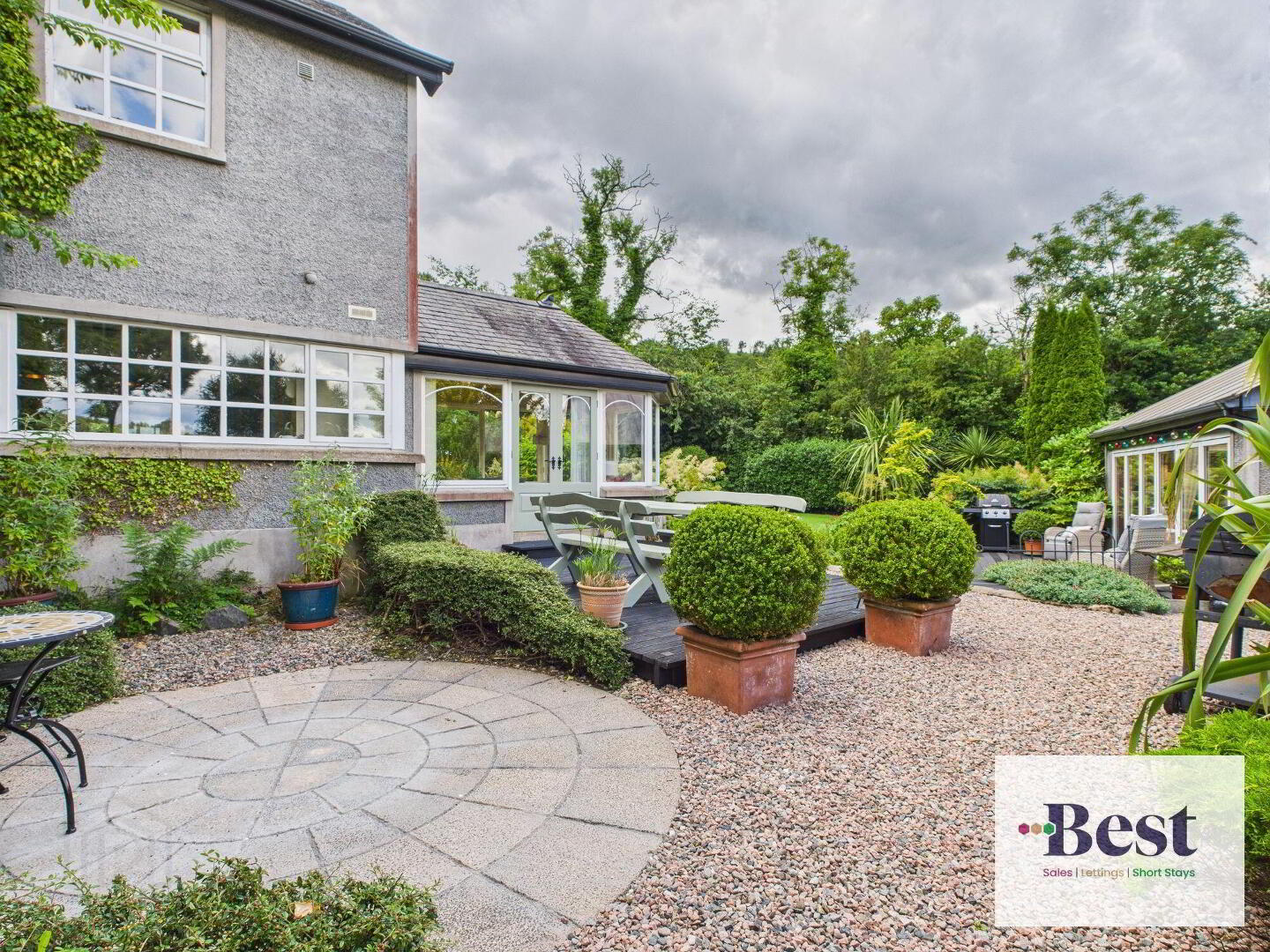 SUMMER HOUSE Facing the conservatory, this exceptional space is approached via patios for outside dining, planted and stunning landscaped areas and a composite deck. It has bi fold doors to the front and french doors to either side making it a fully adaptable area for indoor / outdoor living. It is divided into two parts with the rear area housing kitchen and lounge space. This is the size of a small bungalow and would make an ideal annexe also. It benefits from wall downlighters and a ceiling and fan light. Limestone tiled area to the front. Overhead infra red heaters. Outside electrical sockets. Hot and Cold water taps. OUTBUILDINGS On the other side of the building there is a large L shape garage / stores / workshop area. This is currently split into sections the large area measuring 11.14m x 8.64 (at widest points) with an additional 5.4m x 2.5m and a further store. All are accessed by an up and over garage door and individual doors to the store. This building design matches the house fully and opens onto a fantastic walled courtyard PAVED COURTYARD quality and elegant pavior space with walled boundaries and opening onto lovely rear lawns and pathways The grounds around this property are just exceptional. Years of time and investment have created landscaped, zoned areas. The privacy of the valley type situation combined with the panoramic countryside views, mean you feel like you could be anywhere in the world. This space itself is such a credit to the current owners. There are large lawn areas, reclaimed large stone steps to the front and back doors, woodland type pathways around the borders with nicely thought out seated areas to sit and enjoy nature in peace and quiet. The grounds also have formal patio and decked areas, wilder garden areas, fruit trees, vegetable planting sections, a lake, housing for hens or other animals. Consisting of approximately 1.4 acres they simply must be viewed to truly appreciate the space and privacy on offer. This home will appeal to families, couples and business owners alike. It offers high end adaptable accommodation, in an idyllic setting. The anonymity and privacy available here while being minutes to main routes in all directions will appeal to many buyers. Location wise you are 10 minutes to Carrickfergus, 11 minutes to Larne, approx 30 minutes to both Belfast City Airport and Belfast International Airport. Other points of interest The home has a French Slate roof giving it a traditional, quality and period influence Feature high ceilings throughout Painted solid mahogany doors and windows known for durability and strength support the owners choice of using of natural products where possible. A passivent Ventilation system has been installed at time of build. Also intergrated external lighting , alarms and sound system fitted to four outdoor zones Oil heating (ground floor underfloor ) Viewing is strictly via agent. PLEASE NOTE: We have not tested any appliances or systems at this property. Every effort has been taken to ensure the accuracy of the details provided and the measurements and information given are deemed to be accurate however all purchasers should carry out necessary checks as appropriate and instruct their own surveying/ legal representative prior to completion.