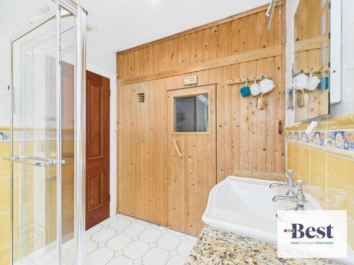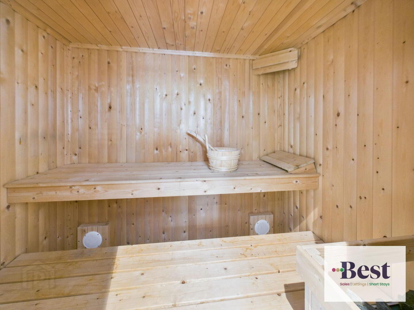 The current large master bedroom en-suite benefits from a Sauna and walk in wardrobe.