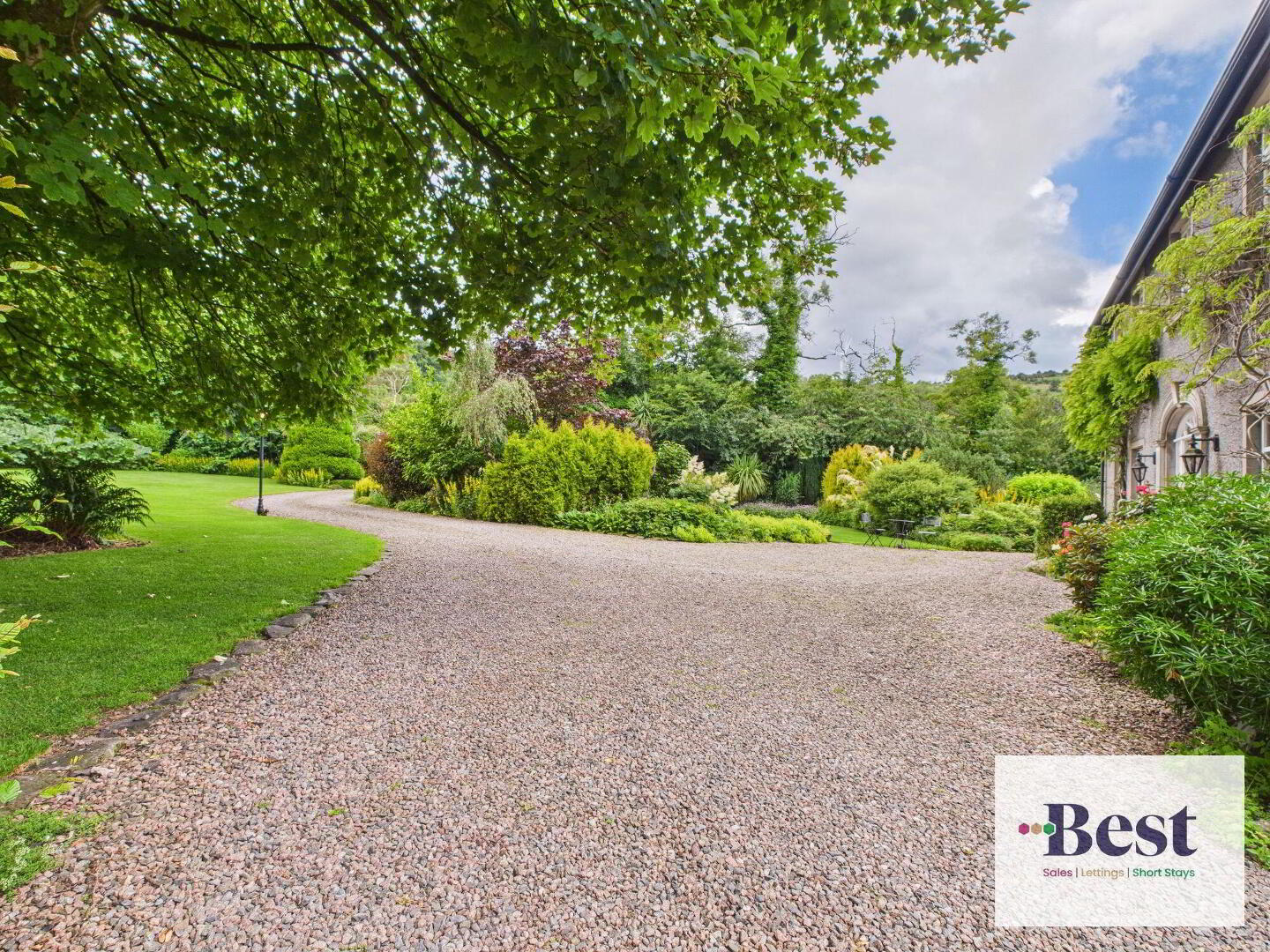 Front gardens laid in lawn, patios, courtyard, lake, planting enclosures etc, all bounded with mature trees creating forest style paths and walks within the grounds, make this a very special place.
