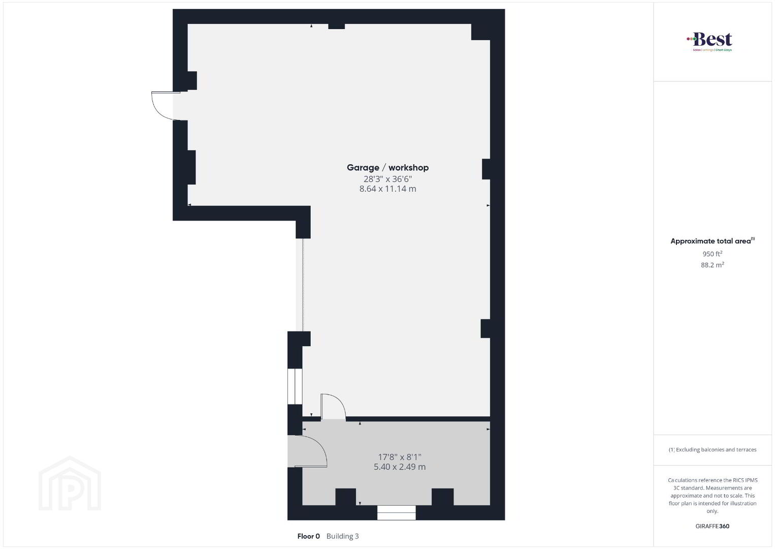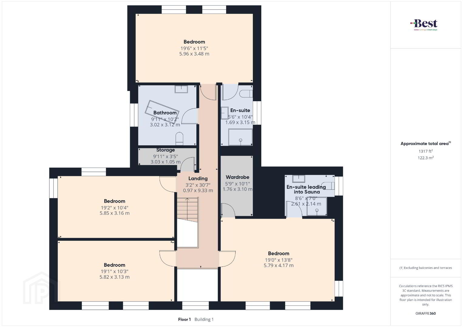 Landing 9.33m x 0.97m (30'7 x 3'2)