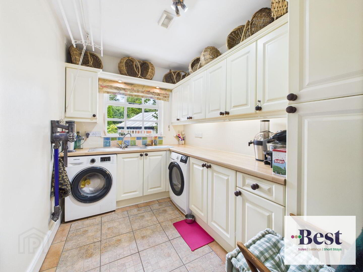 Great utility space with excellent high and low level units and plenty of work surface. Plumbed for washing machine and space for tumble dryer. Stainless steel sink with drainer. Plenty of storage.