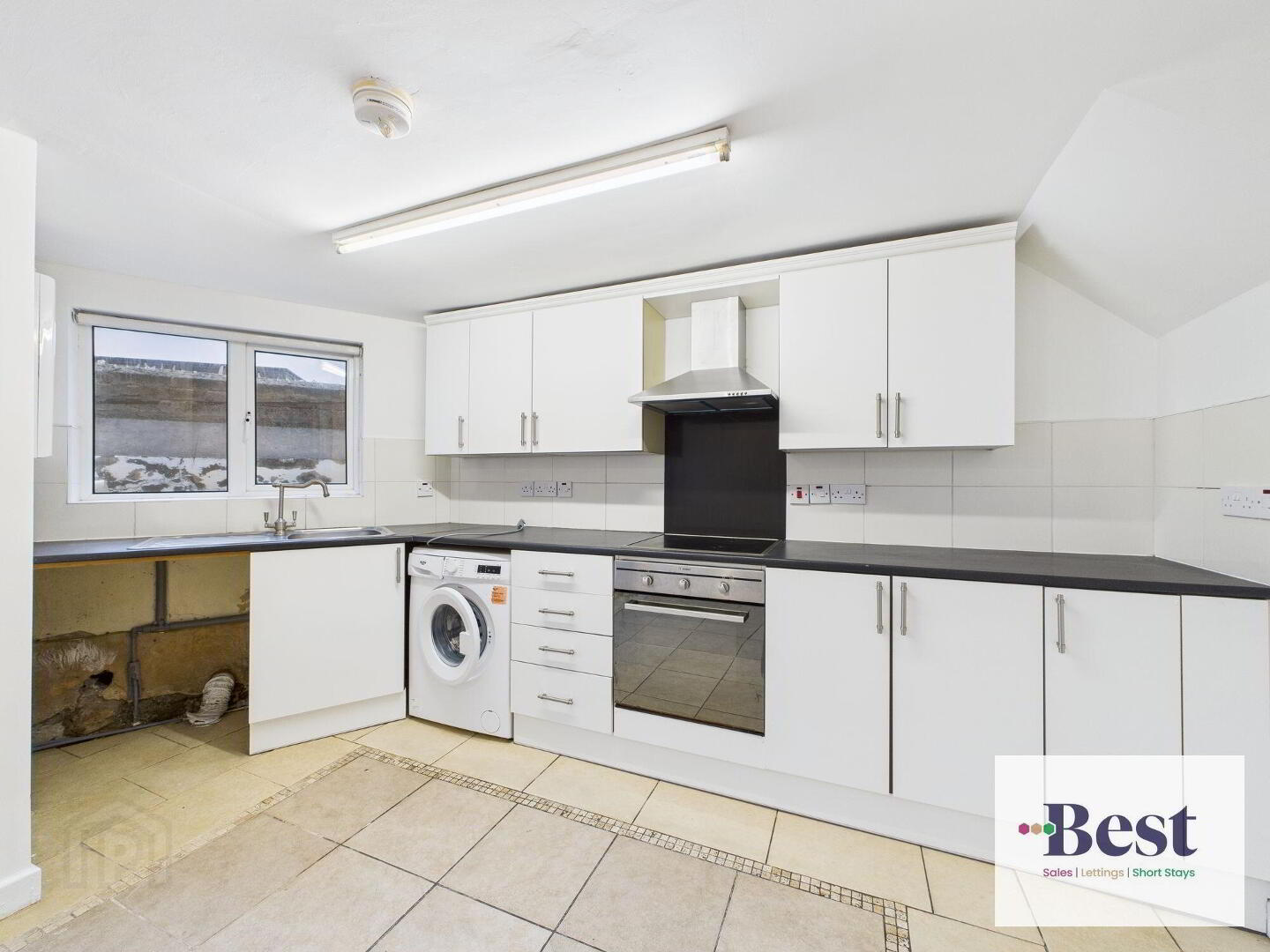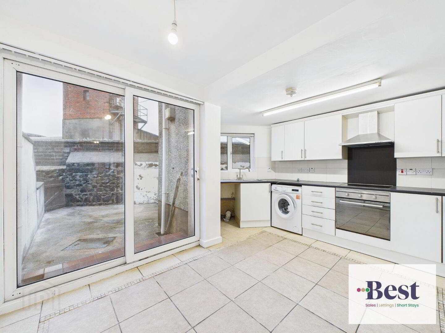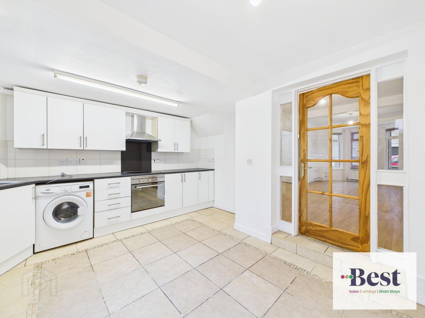 Well proportioned kitchen with sliding glass doors to rear fully enclosed garden, double glaze white PVC. A good range of high and low level units, laminated worktop, four ring electric hob, electric under oven , space for washing machine and dishwasher, gas boiler.