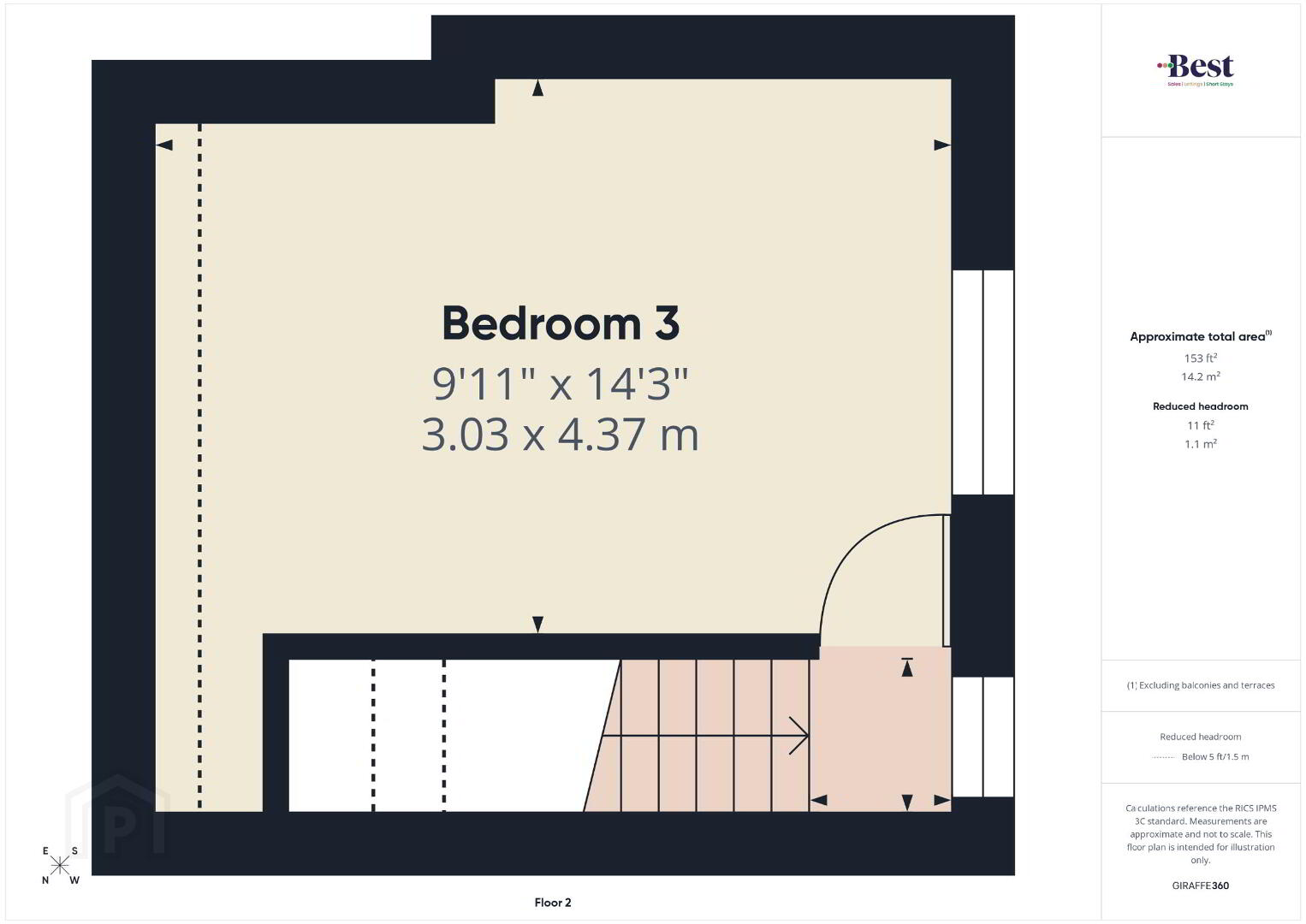 Bedroom 3 4.4m x 3.08m (14'5 x 10'1)