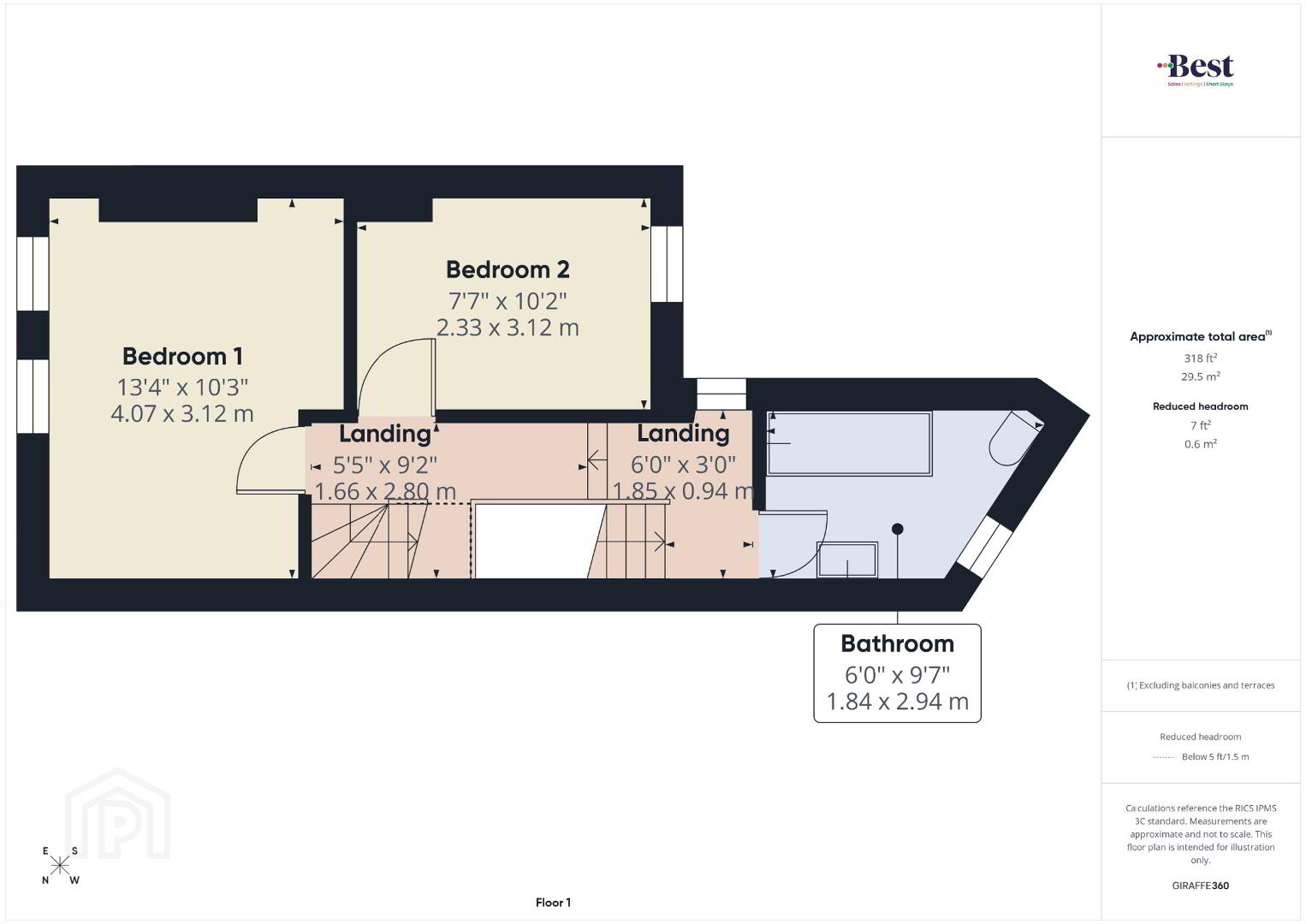 Bedroom 1 3.15m x 2.35m (10'4 x 7'9)