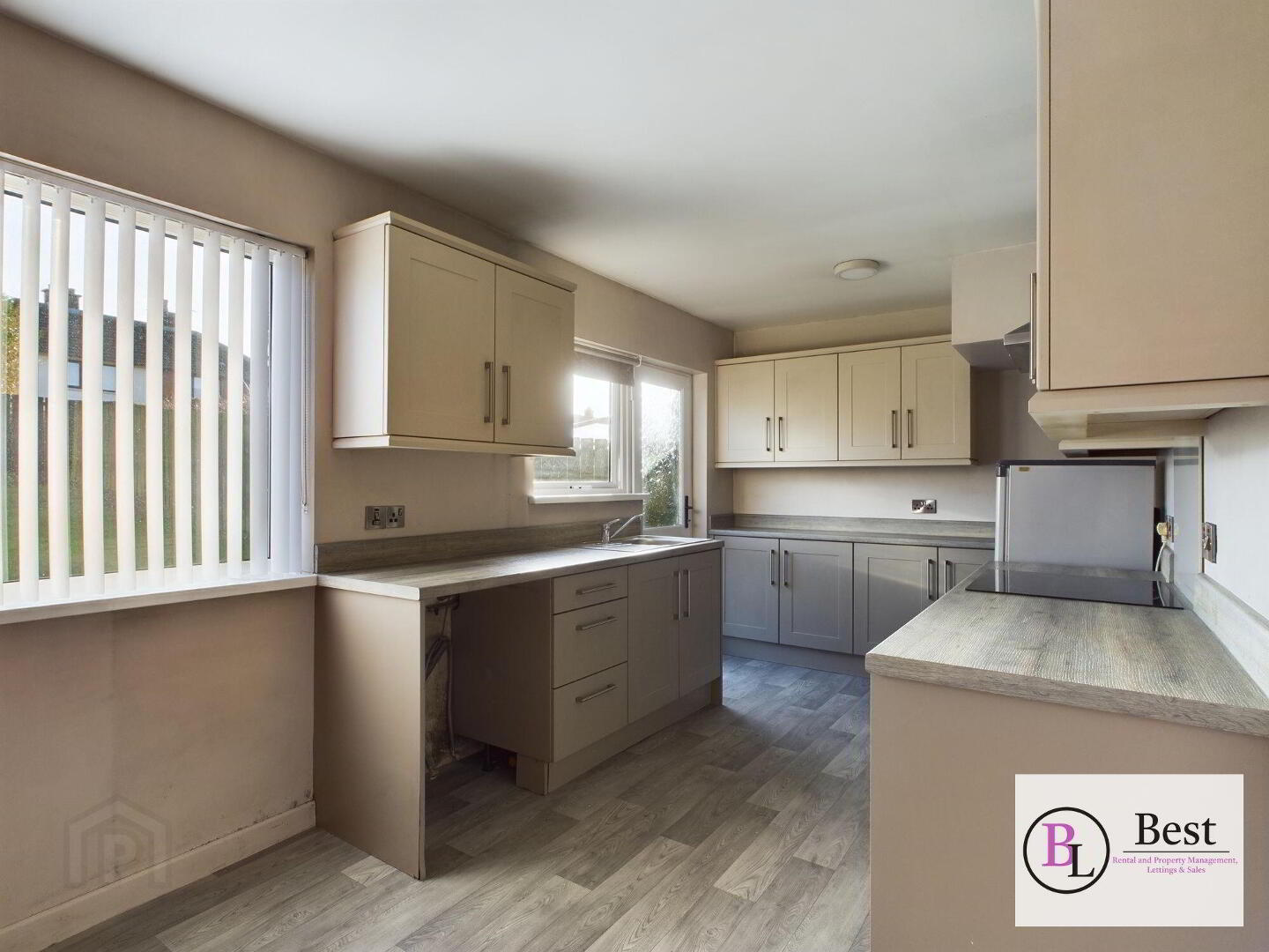 Beautiful modern kitchen with lots of worktop and space for appliances. Open plan dining space too with plenty of room for table. Bright welcoming hub with large windows, door to rear garden